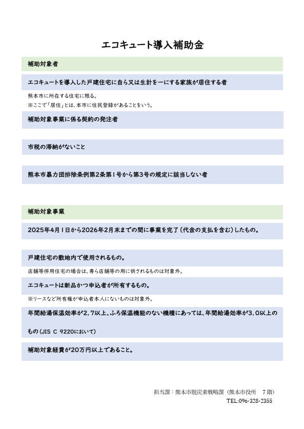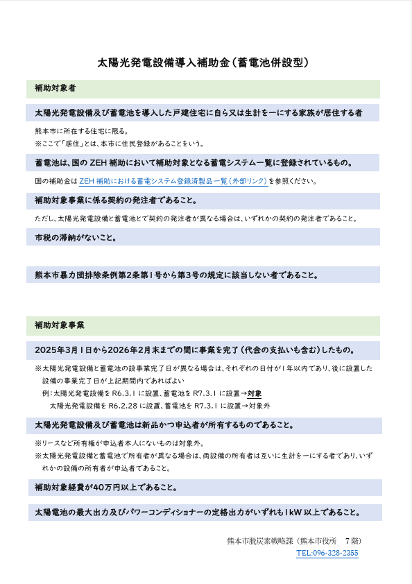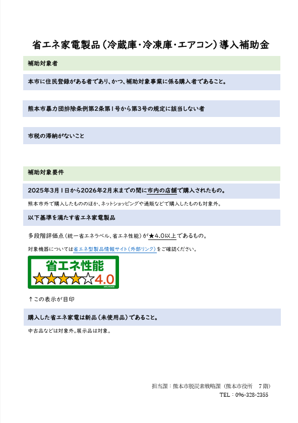 令和7年度(2025年度)熊本市省エネルギー機器等導入推進事業補助金