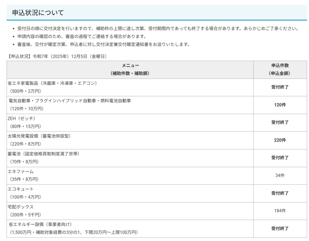 家電・ZEH・エコキュート系は「受付初日」で枠がなくなることが多い ので、毎年争奪戦です。